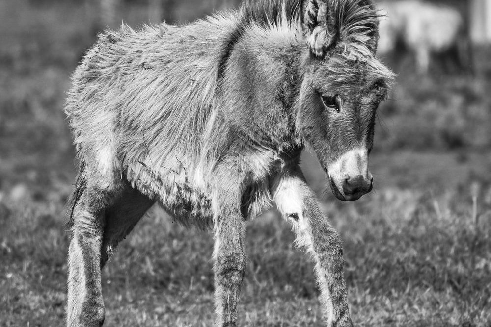 Young Donkey, walking through the meadow