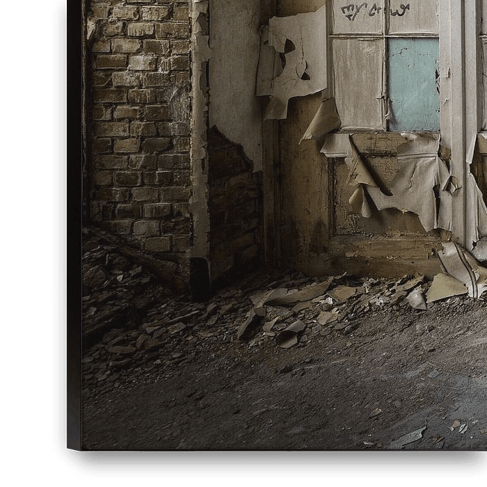 Large doors in an old dilapidated building, the light from outside falls nicely on doors where the paint is peeling. The hall behind the doors has a blue glow, it forms a nice contrast with the yellow of the doors in the front of the picture. An atmospheric whole, with a nostalgic feeling of the past, a sense of wealth, of history, and…