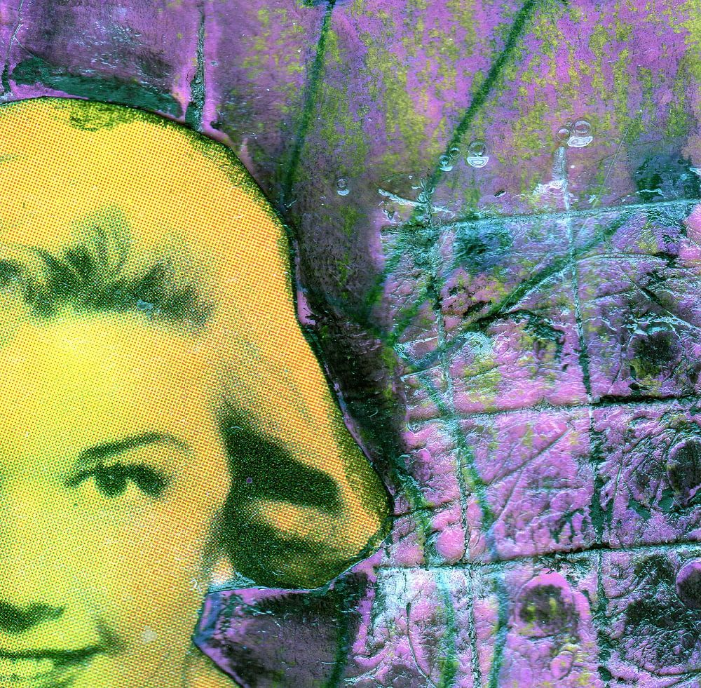 Vintage photo in a purple painting. Artistic modern contemporary work of the singer, actress and animal activist.