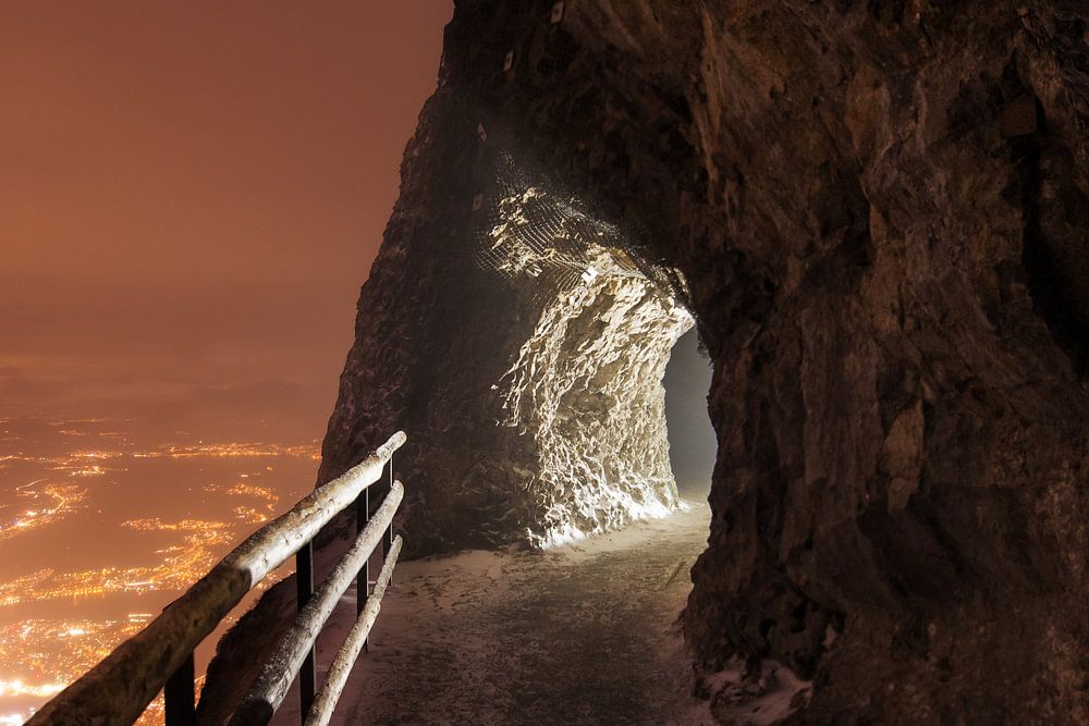 View of Lucerne at night from the Drachenweg on Mount Pilatus.