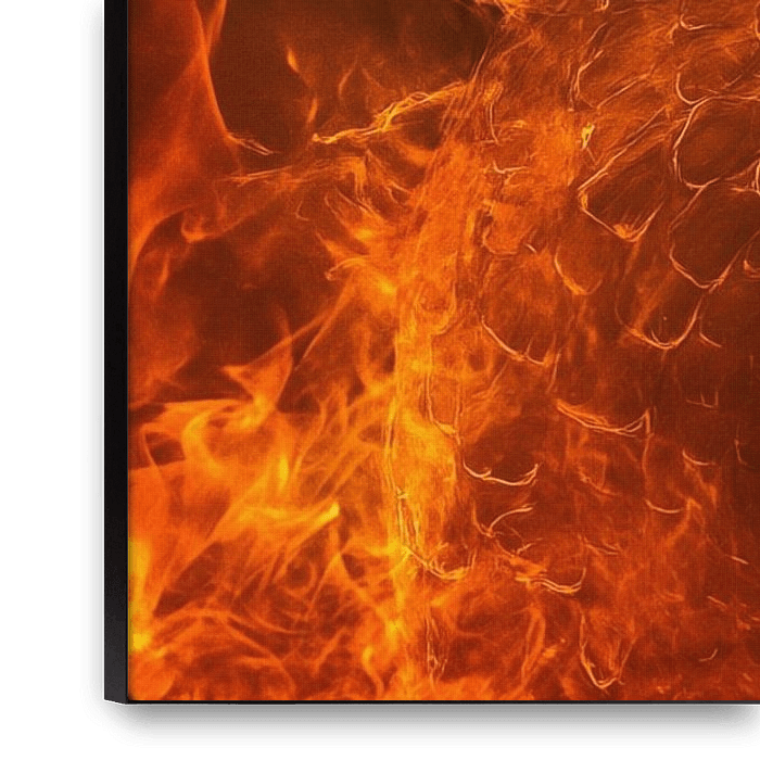 Dragon in fire panorama painting that will be a wonderful luxurious addition to any room. With its unique and stylish look, it is a true eye-catcher. The brilliant colours and unusual design make this artwork 100% unique and original. It is the perfect photo print to complete your interior.