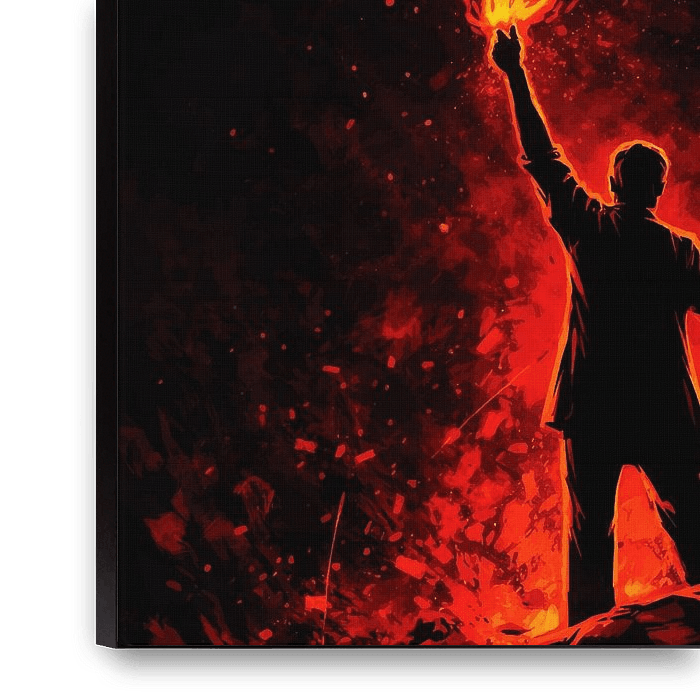 Buy this painting Dramatic Man Holding Massive Fire Torch Illustration by Ramy Salah Hefny as a reproduction on canvas, ArtFrame, poster and wallpaper, printed on demand in high quality.