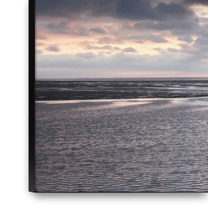 This photo was taken at the Wadden Sea near the Frisian town of Moddergat. The sun was just setting, giving the clouds above the sea beautiful colors.