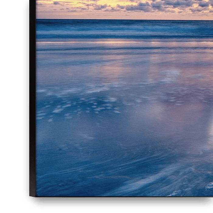 Your chosen art on canvas, stretched in an aluminum frame. Quick and easy to change for a fresh look and exactly as you want it.