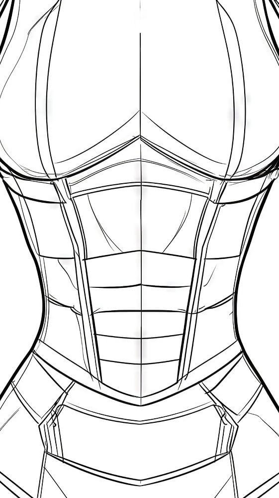 This black and white illustration shows a detailed concept of a female superhero costume that emphasises the torso and arms. Ideal for comic books, video games and fantasy projects, the design conveys strength and elegance. With clean lines and stylised elements, this concept is perfect for creative projects looking for a strong, dynamic look.