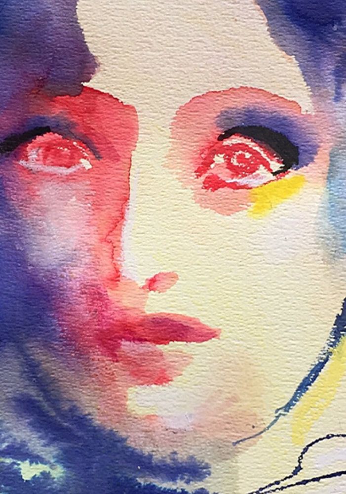 Colorful and modern portrait made with ecoline watercolor and India ink. Inspired by the women of the Belle Epoque period.