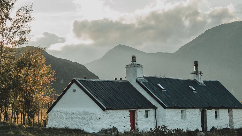 A white cottage in the Scottish Highlands. A dream house, with Glen Coe as the back garden and surrounded by mountains and rivers.