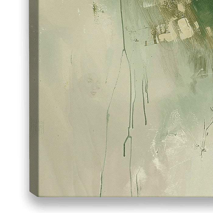 Dreaming in Colour - This women's painting shows an evocative, almost ethereal impression of a standing woman, looking down the left side of the canvas. She wears what looks like a dark hat and a flowing, greenish dress. The surrounding brushstrokes, rich in texture and layers, create a dynamic and colourful environment. The background…