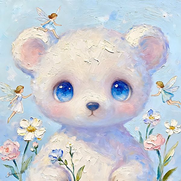 Introduce a world of warmth and wonder with “The Dreamling Meadow – Kids Collection,” a luxurious, museum-quality fine art design created to inspire comfort, imagination, and timeless charm. This enchanting close-up oil painting features a fluffy white teddy bear with luminous blue eyes and adorable rosy cheeks, capturing an…