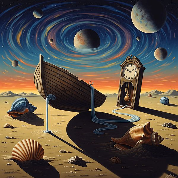 A surreal fine art illustration exploring the fragile boundary between dreams and reality. This artwork blends symbolic objects, floating structures, and poetic lighting to create a visually striking composition filled with mystery and imagination. Perfect for modern interiors, creative spaces, and art lovers who appreciate deep,…