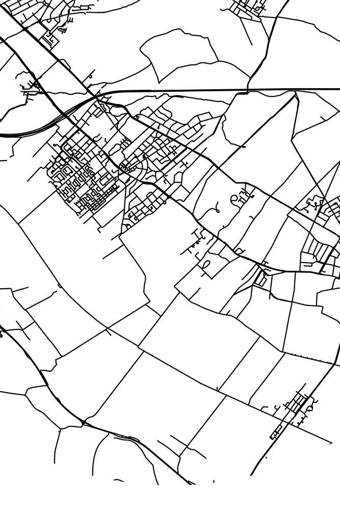 Black and white map, street map or street plan of Driebergen-Rijsenburg. Driebergen-Rijsenburg is located in the municipality of Utrechtse Heuvelrug, province of Utrecht. The city map includes all public roads in Driebergen-Rijsenburg. Furthermore, the map is provided with the coordinates of the center of Driebergen-Rijsenburg.