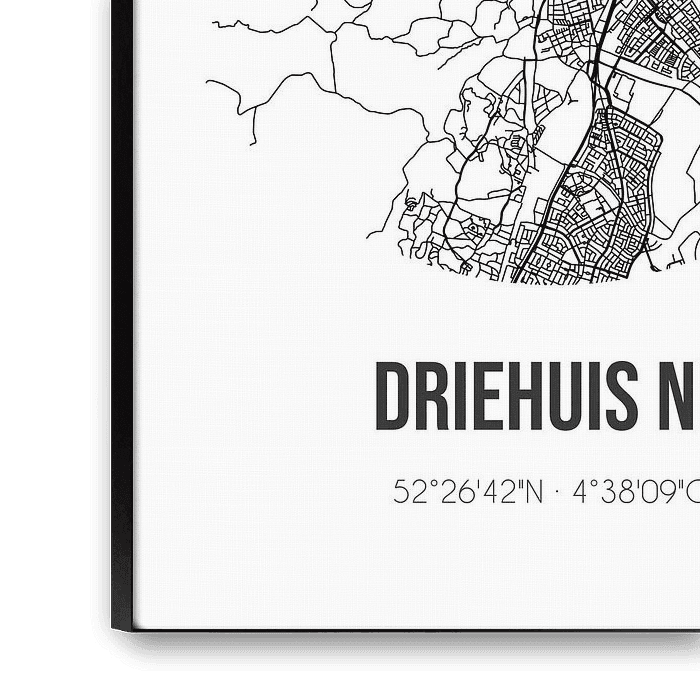 Black and white map, street map or street plan of Driehuis NH. Driehuis NH is located in the Randstad, in the municipality of Velsen, province of North Holland. The city map includes all public roads in Driehuis NH. Furthermore, the map is provided with the coordinates of the center of Driehuis NH.