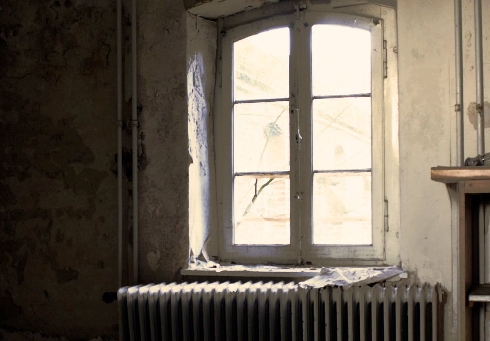 History is crumbling from the walls, moisture is slowly making the wallpaper peel off. In the corner, the remnants of an old laundry corner.
