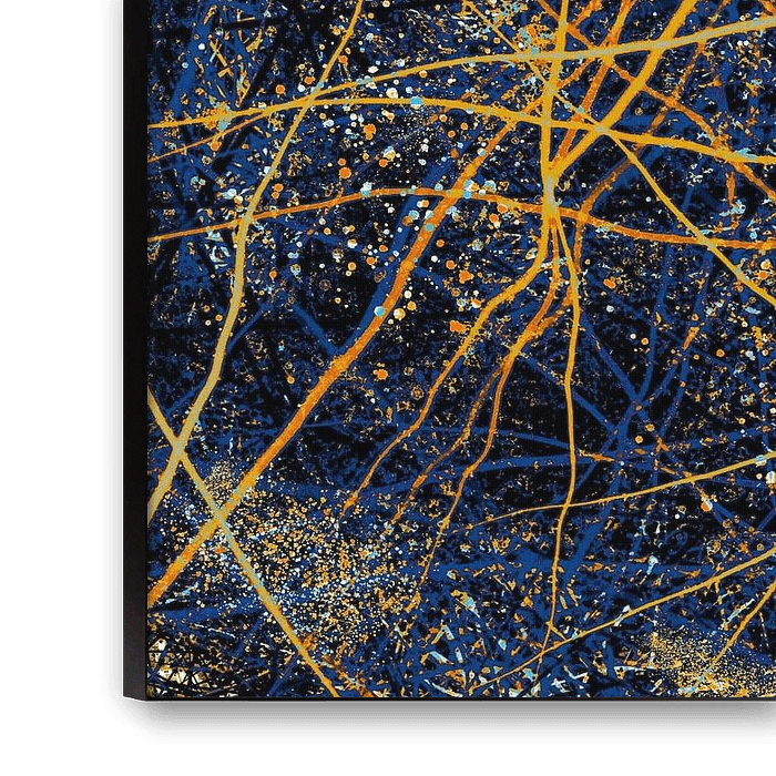 In this new painting inspired by Jackson Pollock, alongside his signature dripping technique, I introduced lines and streaks that cut across the composition like paths of energy and direction. The digital brushstrokes intersect in a balance between chaos and structure, creating a vibrant visual tension. Each color and line weaves together like streams of thought, an explosion of movement that reinterprets the dynamic power of abstraction.