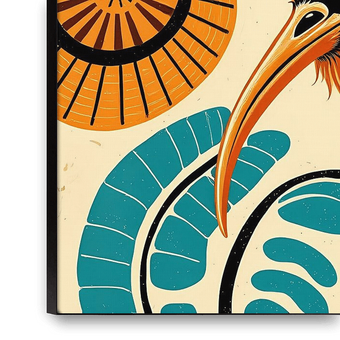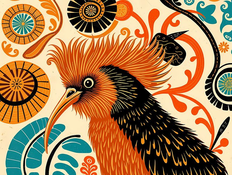 An abstract, colourful rendering of a kiwi bird