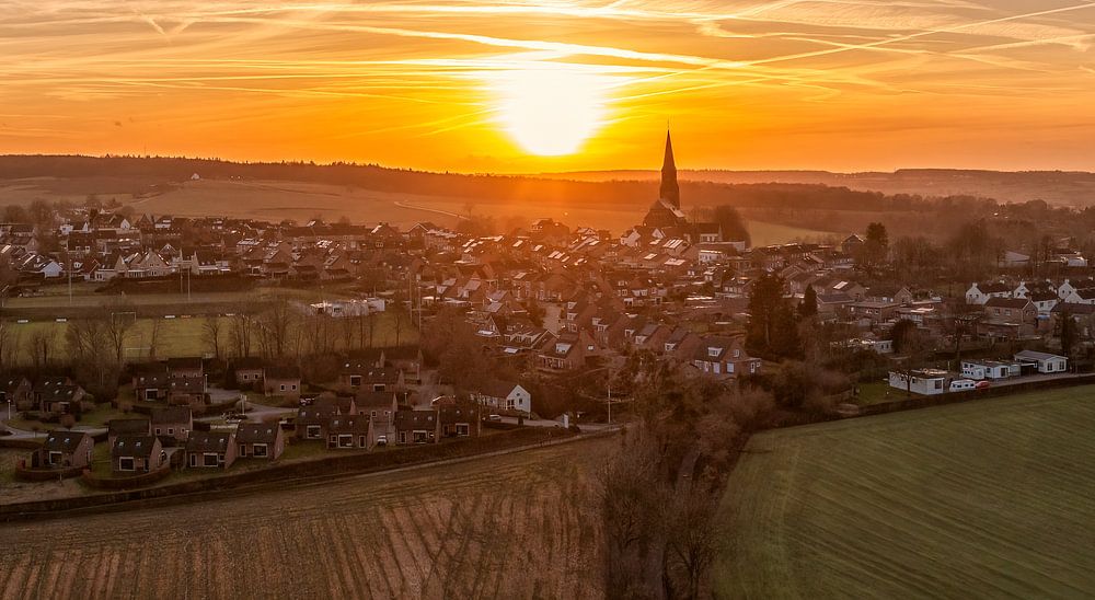 Drone panorama of sunset at Vijlen in southern Limburg by John Kreukniet