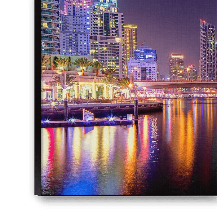 At night many boats enter the Dubai Marina and leave great light trails as they pass giving the water magnificent colors.