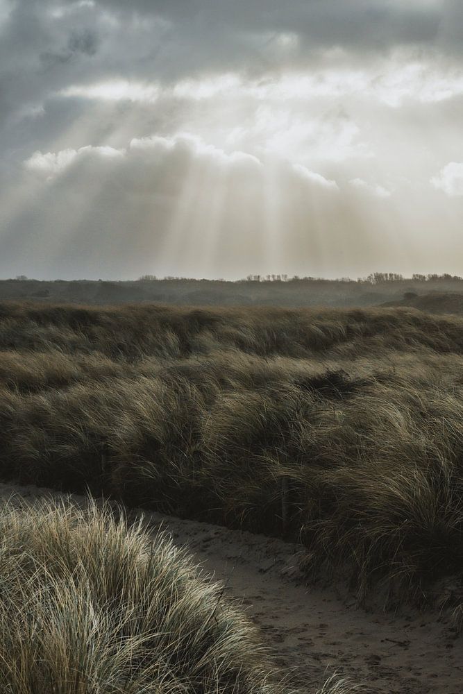 Buy this landscape artwork Dunes between Katwijk and Wassenaar with threatening skies by Dirk van Egmond on canvas, ArtFrame, poster and wallpaper, printed on demand in high quality.