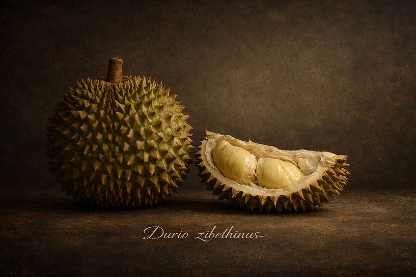 Buy this still life Durian in a Classical Still Life by Bert Quaedvlieg on canvas, ArtFrame, poster and wallpaper, printed on demand in high quality