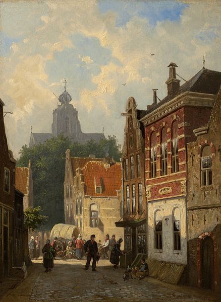 Buy Dutch Street Scene, Cornelis Springer as a reproduction on canvas, ArtFrame, poster and wallpaper, printed on demand in high quality.