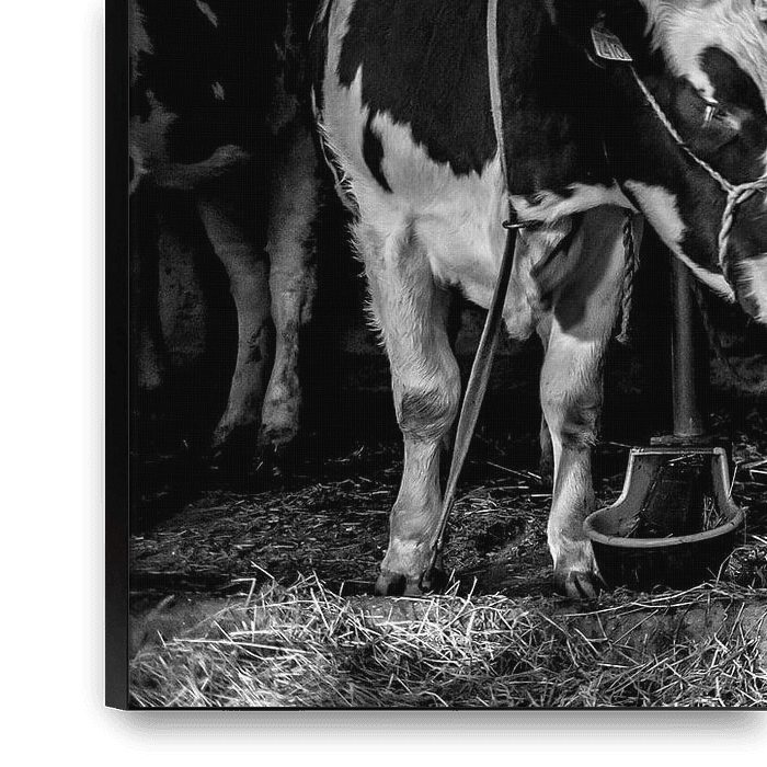 Buy this cow art Dutch cows in an old barn by Inge Jansen on canvas, ArtFrame, poster and wallpaper, printed on demand in high quality.