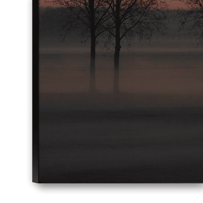 A lovely photo taken from the Diefdijk between Leerdam and Culemborg. You see a beautiful sunrise with mysterious mist hanging over the roads and meadows. In the foreground beautiful silhouettes of trees.
