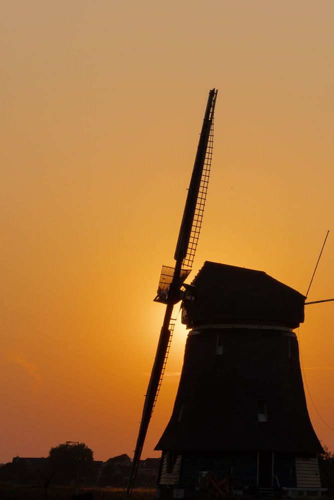 Dutch windmill - sunset - portrait by Marcel Mombarg
