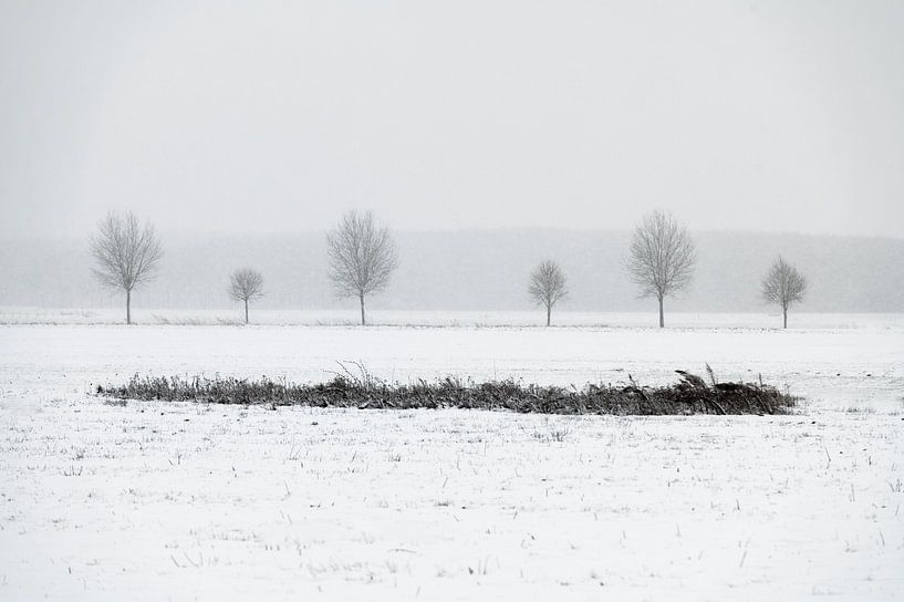 A little more to the foreground a reed belt, not yet completely snow-covered.