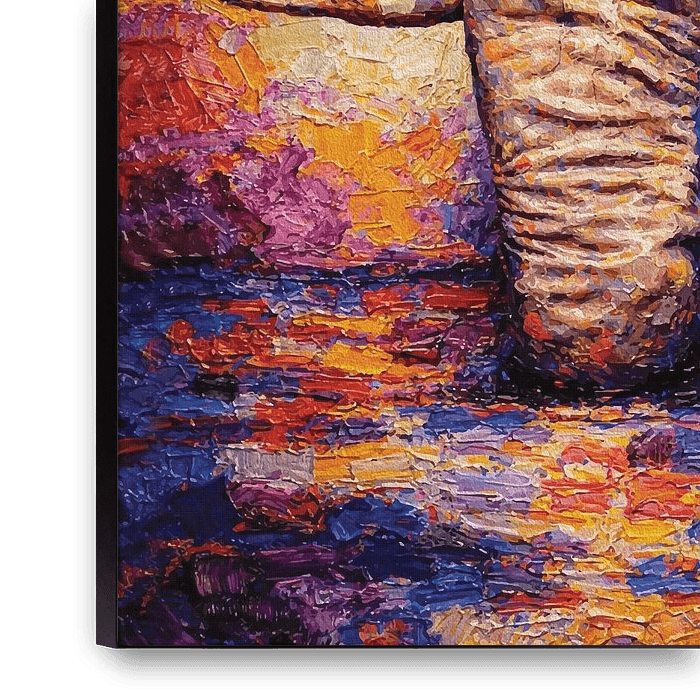 Your chosen art on canvas, stretched in an aluminum frame. Quick and easy to change for a fresh look and exactly as you want it.