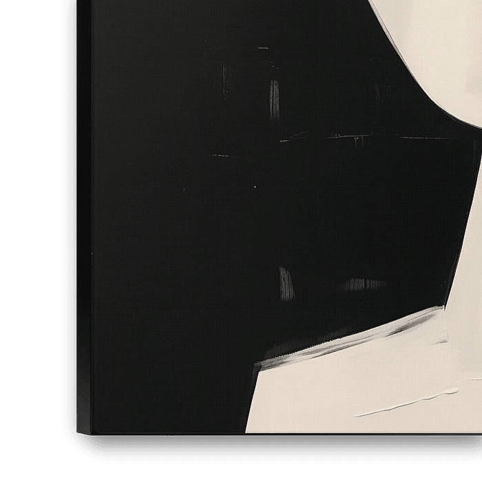 Abstract composition with strong contrast between black, white and green areas. Stylised profile of a face with minimalist lines and shapes.