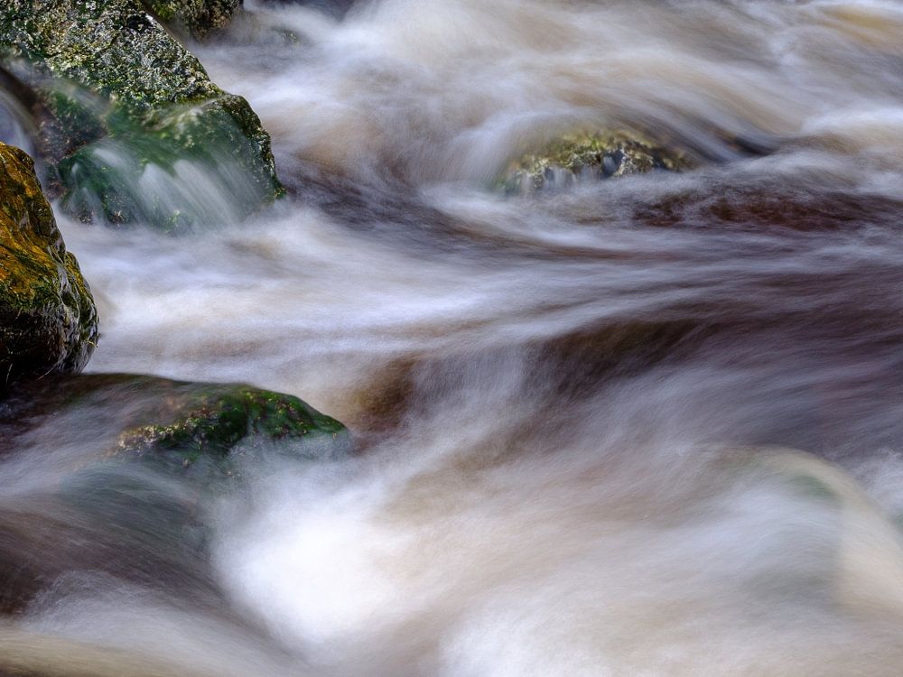 Photo taken in the La Hoëgne River near Pont Centenaire (Hockai). The dynamics of the fast-flowing water in the La Hoëgne River can be clearly seen.