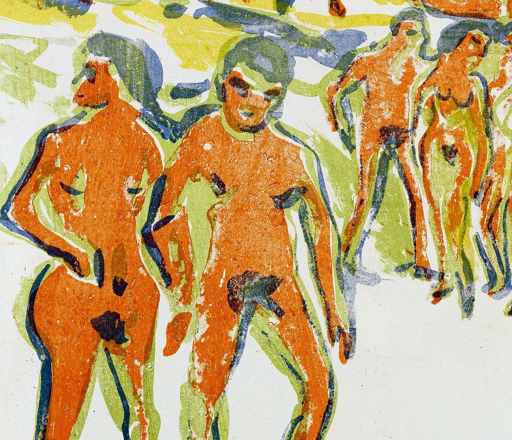 About "ERNST LUDWIG KIRCHNER, Groups of swimmers (Sunday in Moritzburg, bathing), 1909"
