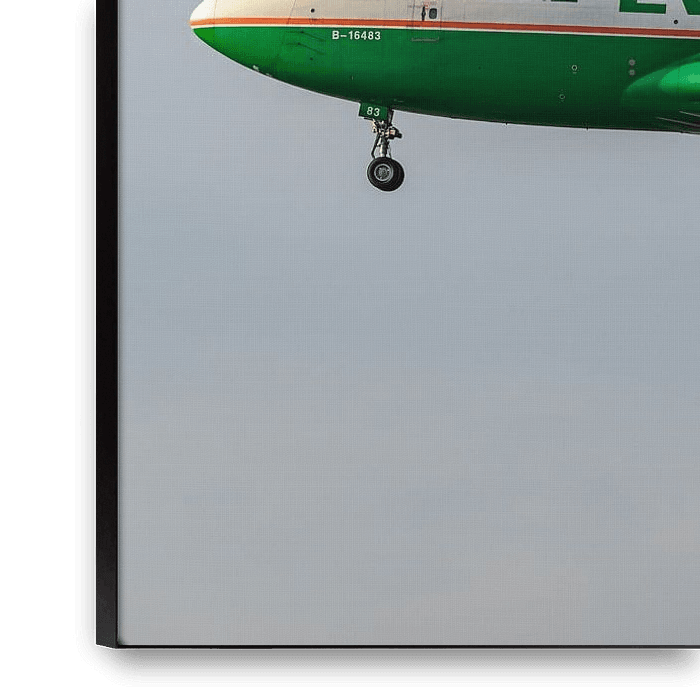 An EVA Air Cargo Boeing 747-400 (B-16483) photographed just before landing at Frankfurt am Main airport.