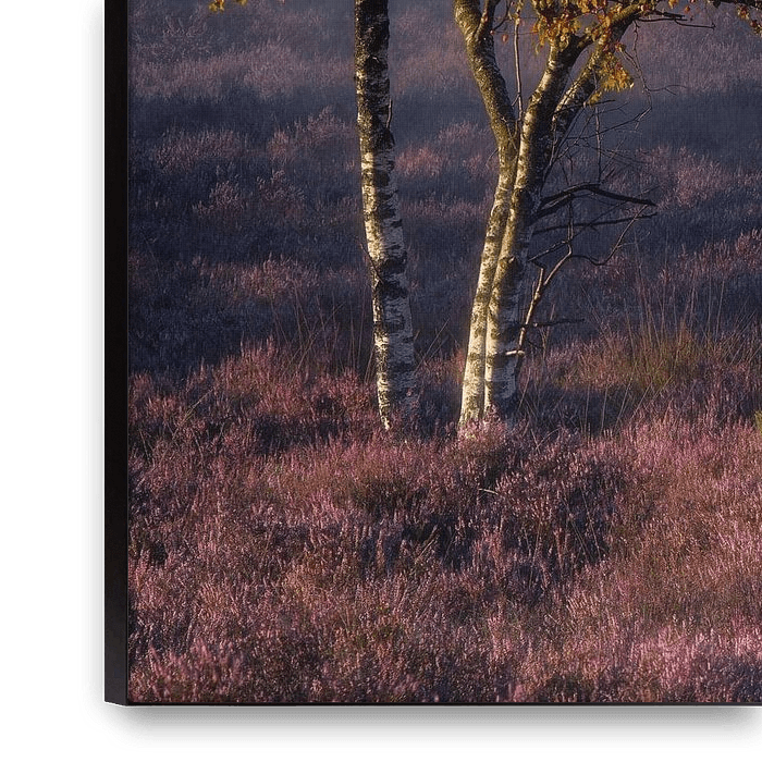 Buy this landscape artwork Early autumn colors and blooming heather on the Oirschotse Heide. by Jos Pannekoek on canvas, ArtFrame, poster and wallpaper, printed on demand in high quality.