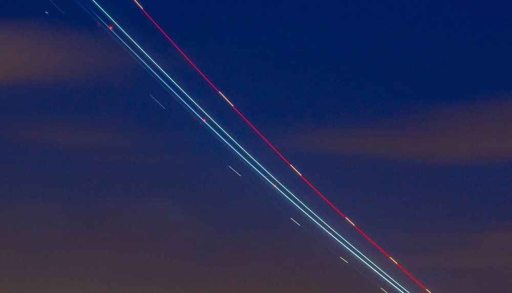 This picture was taken with a long shutter speed at Schiphol just when the first dawn was visible.