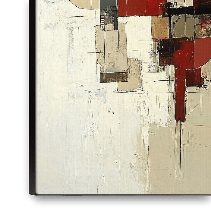 Earth tone Abstract | Harmonic Earth tones - This abstract painting features a dynamic composition of overlapping rectangular shapes in earth tones, with accents of deep red and dark brown, exuding a sense of tranquillity and balance through the harmonious balance and soft transitions of the colours.