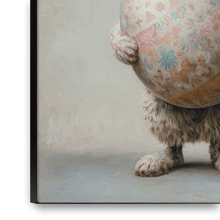 Buy this painting Easter bunny with large painted egg by But First Framing as a reproduction on canvas, ArtFrame, poster and wallpaper, printed on demand in high quality.