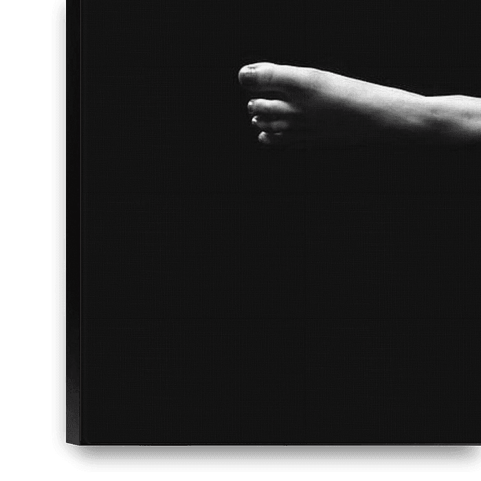 Nude lying on the floor with head bowed, legs at both sides, with black background