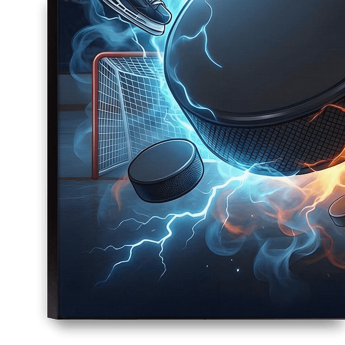 Harness the raw power of hockey with this retro bootleg poster featuring a glowing puck and lightning effects in an icy arena, ideal for players and fans to motivate and decorate with adrenaline-pumping sports spirit.
