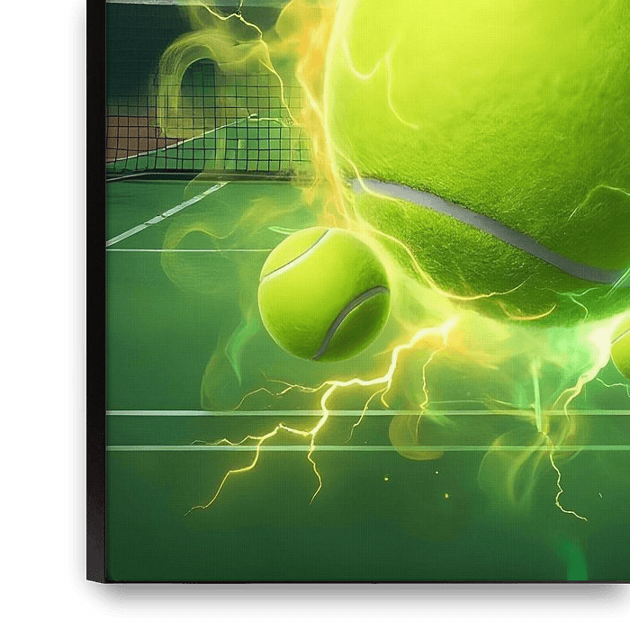 Serve up endless energy with this vibrant retro bootleg tennis poster of a neon ball bursting with lightning, perfect for court lovers to motivate daily and enhance racket sports-themed rooms with dynamic flair.