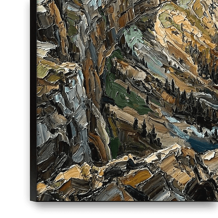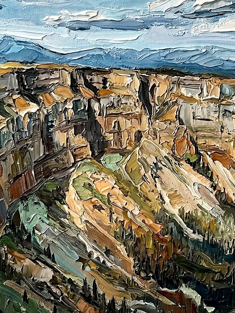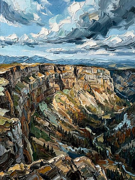nspired by the powerful landscape of Creux du Van, this impasto artwork reveals a vast natural amphitheater carved over time. Heavy textures and dramatic light express raw beauty, depth, and the enduring force of nature