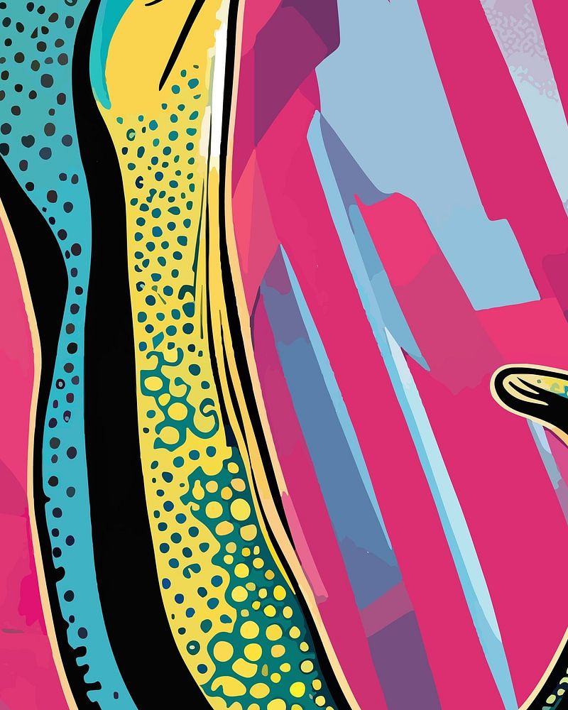 Dive into the elegance of the European eel with this captivating pop art illustration. The artwork combines vibrant hues and bold patterns to create a striking portrayal of this mysterious marine creature. Each element, from the eel's sleek body to the swirling water around it, is designed to evoke a sense of movement and energy. Ideal for those who appreciate the fusion of wildlife and modern art, this piece adds a touch of aquatic sophistication and creativity to any environment, celebrating the enigmatic beauty of the European eel.