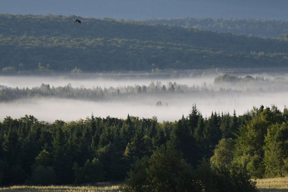 Een mist op een zomerse ochtend, Sainte-Apolline, Québec, Canada
