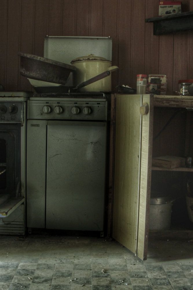 Deze keuken is al jaren verlaten en er komen dus ook al jaren geen mensen meer.