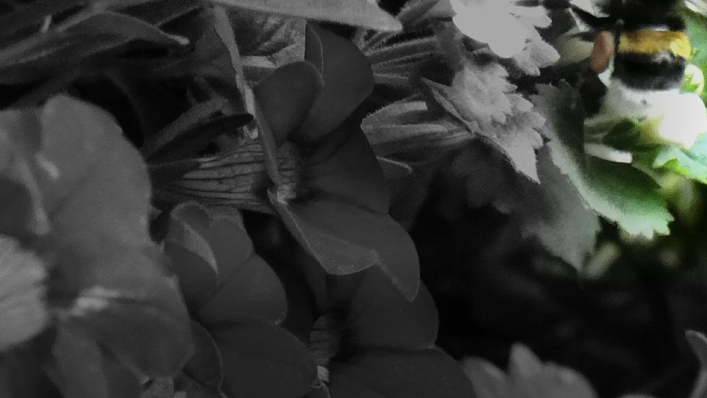 Buy the photo Een zwart-wit foto van een bij by Veluws on canvas, ArtFrame, poster and wallpaper, printed on demand in high quality.