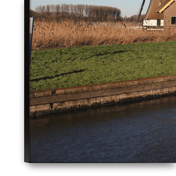 Buy this painting Eendragtsmolen met Sluis aan de Rottemeren in Zevenhuizen by André Muller as a reproduction on canvas, ArtFrame, poster and wallpaper, printed on demand in high quality.