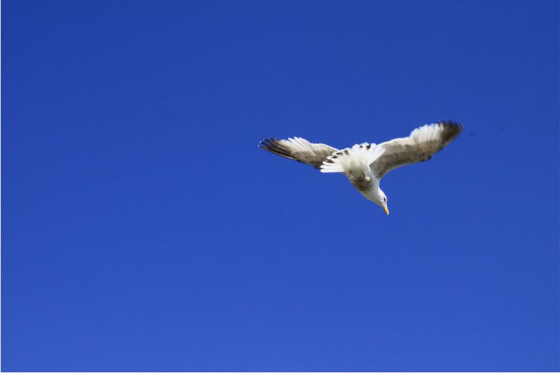Strak blauwe lucht, krijsende zeemeeuwen. Het wordt zelfs deze zeemeeuw te veel.