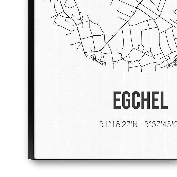 Black and white map, street map or street plan of Egchel. Egchel is located in the municipality of Peel and Maas, province of Limburg. On the city map all public roads in Egchel are included. Furthermore, the map is provided with the coordinates of the center of Egchel.