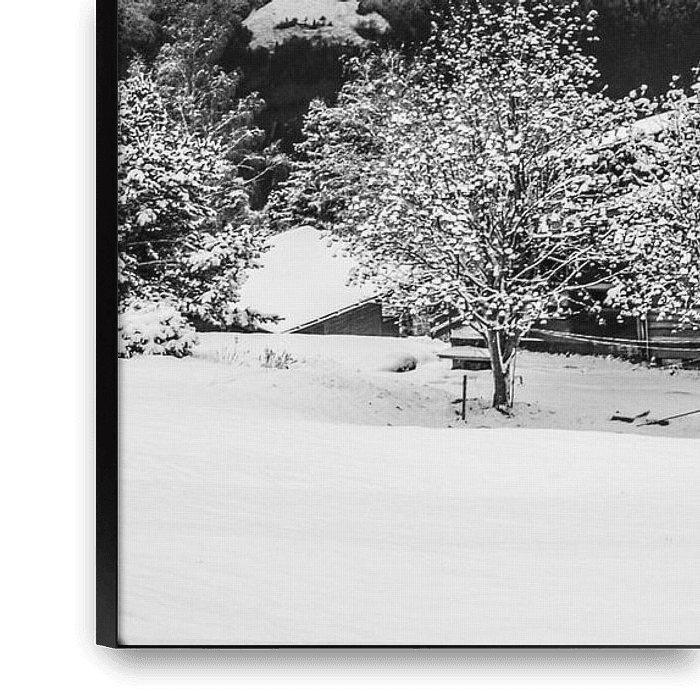Black-and-white image of chalets in the Swiss Alps in Eggberge, Uri.