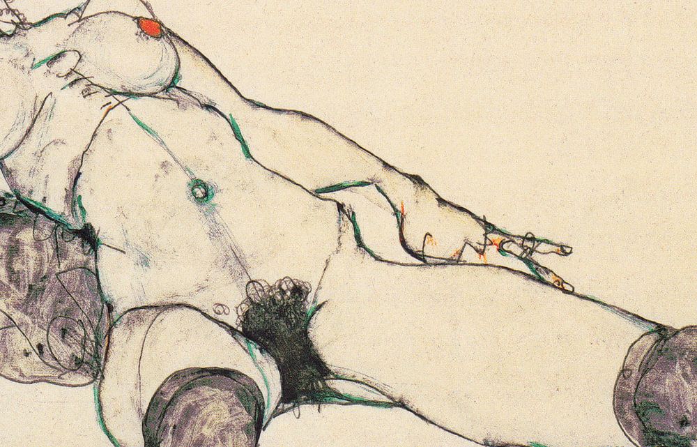 Buy Egon Schiele. Woman with legs spread as a reproduction on canvas, ArtFrame, poster and wallpaper, printed on demand in high quality.